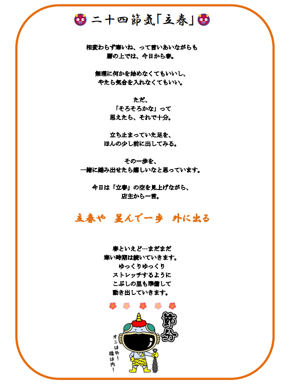 毎週火曜日に、お店のことや、日々の出来事を、